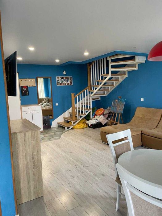 На другому поверсі, як і на першому, стіни під фарбування зі склохолсту, потолок натяжний з лед-підсвіткою та люстрами, на підлозі якісний ламінат та плитка (тепла підлога).
