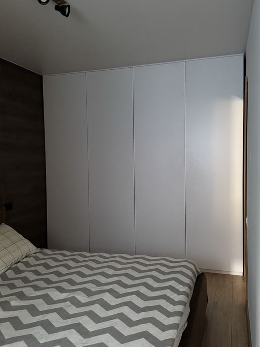 В спальні величезна непомітна вбудована шафа до стелі, вміщує дуже багато всього. Завдяки чому в квартирі не захаращено. Також велика шафа між кухнею та студією для господарських речей.