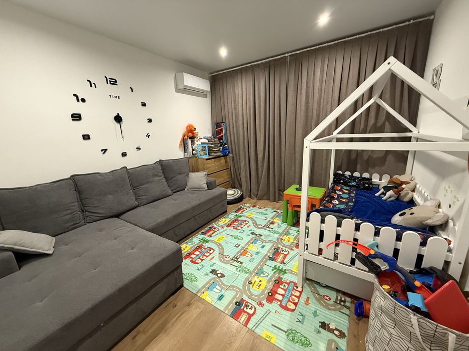 Квартира повністю мебльована, все що на фото крім дитячого ліжка. Є сигналізація, відеоспостереження, кондиціонери в кожній кімнаті, електротехніка, закрита територія з охороною. Поряд атб, трц Дафі, аптека, дитячі гуртки, кавʼярні, нова та укр пошта.