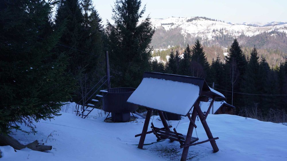 На подвір’ї облаштована парковка, висіяний якісний канадський газон, гойдалка на трьох осіб та великий чан на 600 літрів для 7 осіб — ідеальне місце для відпочинку після гірських прогулянок.