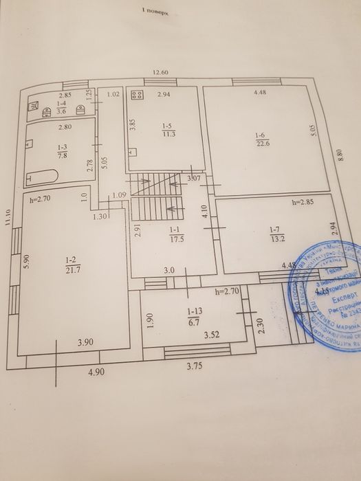 -1 этаж: прихожая, холл , кабинет(13м2), гостинная(22м2) , кухня(11м2).