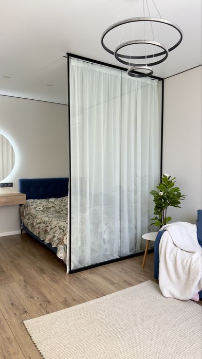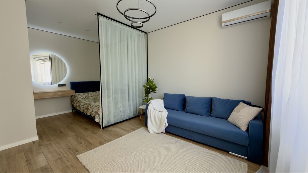 Загальна площа 37 м². Простора кухня, світла кімната, зручне планування. Спальне місце відокремлене перегородкою, що створює додатковий комфорт та затишок. Є великий балкон.