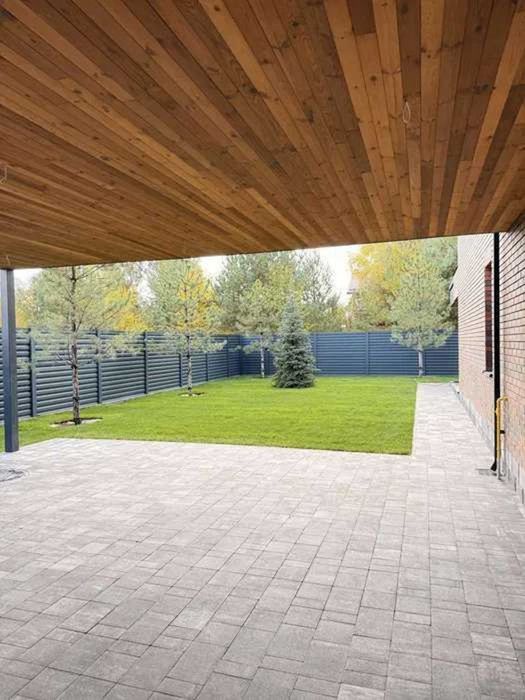 Участок: благоустроенная территория с террасой и навесом.