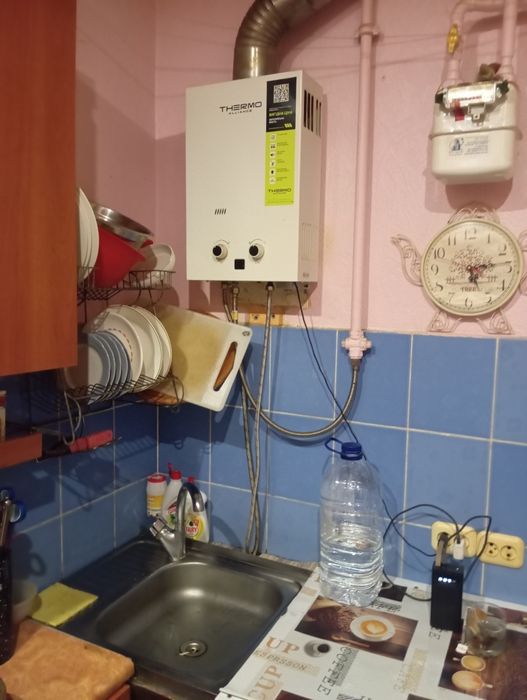 Колонка-постоянно горячая вода.