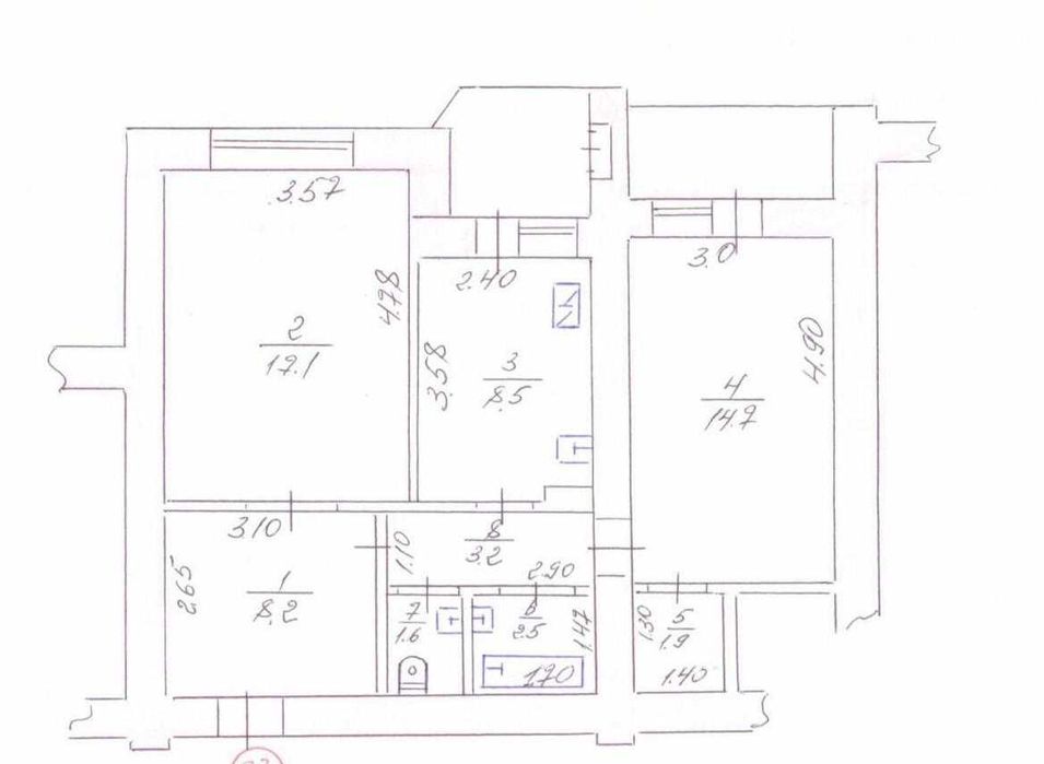 Загальна площа 61 кв м, кухня 8.5