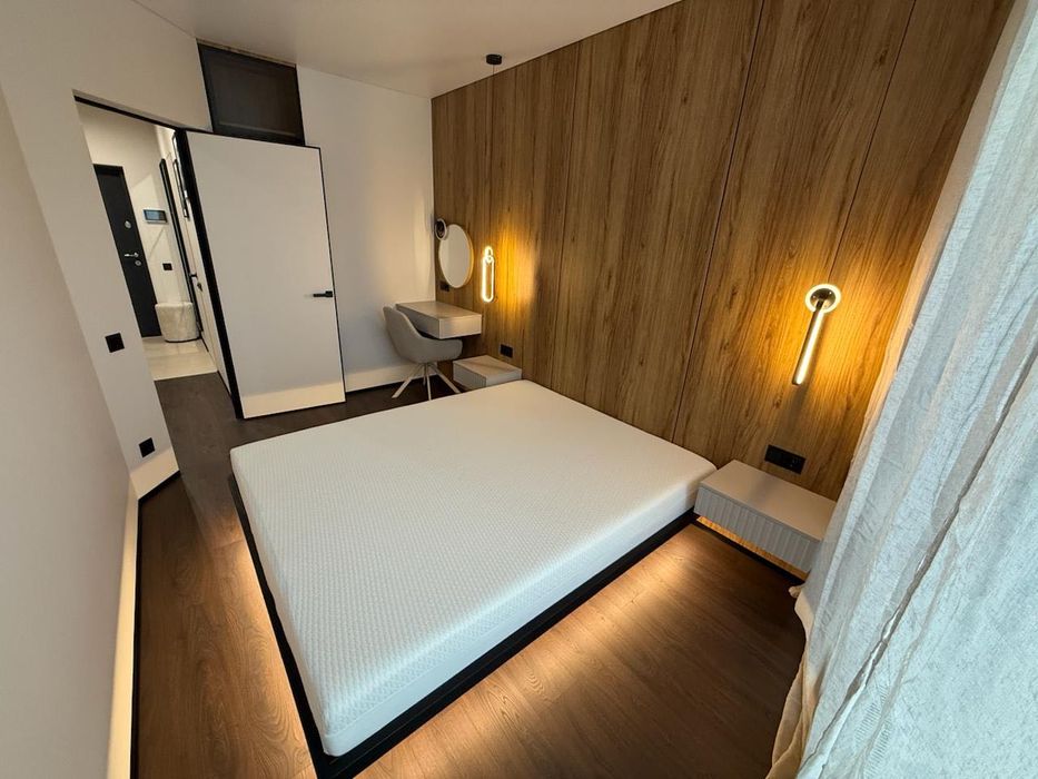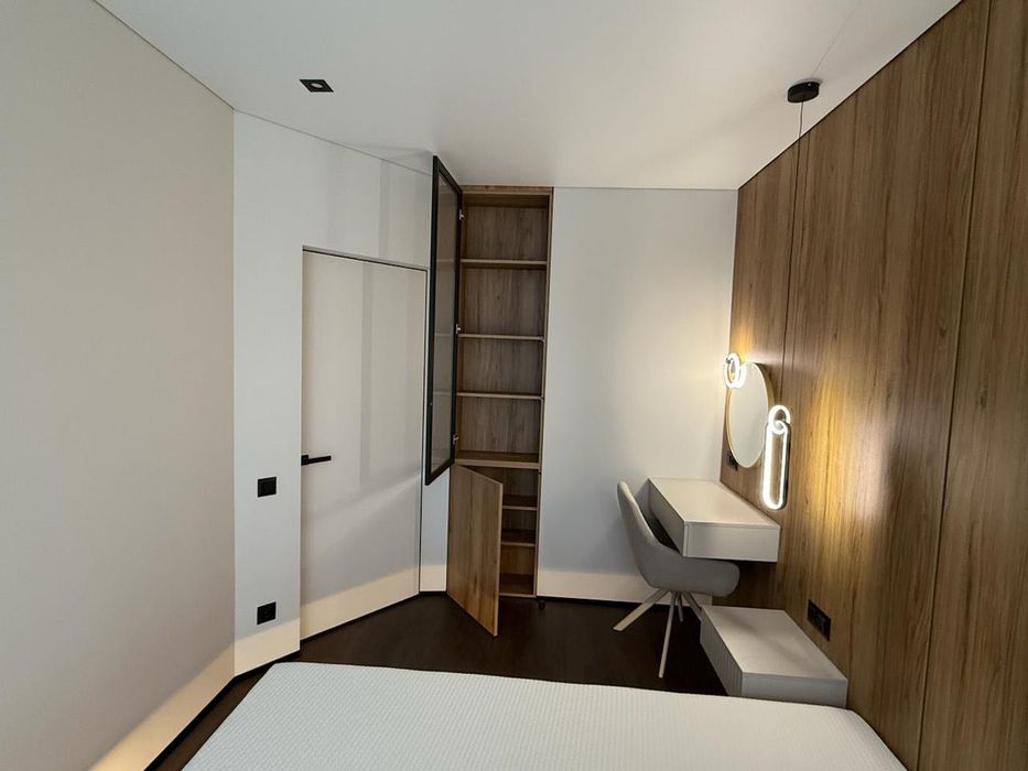 Житлова площа спальні становить 10 кв.м. Площа кухні — 18 кв.м. З суміжним санвузлом. З дизайнерським ремонтом. З броньованими дверима. З підігрівом підлоги.