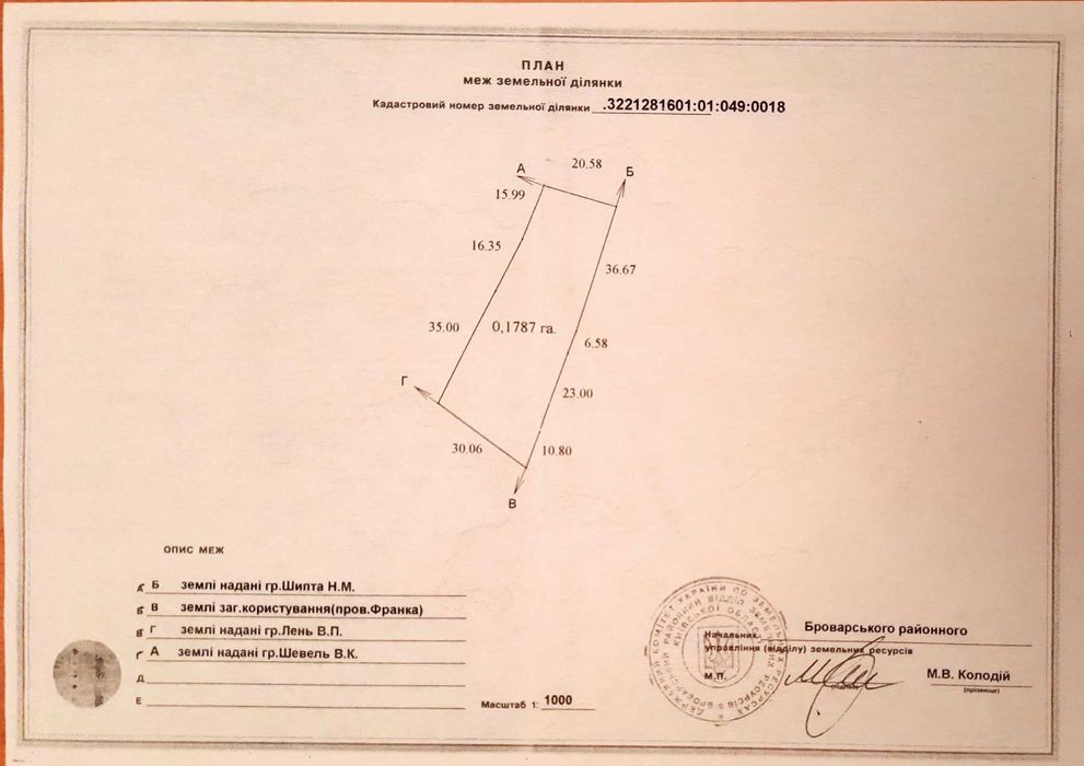 | Земельна ділянка: |