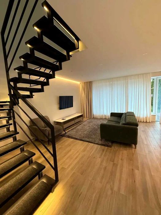 На першому поверсі розташовані кухня з вітальнею та виходом на мальовничу терасу, с/в.