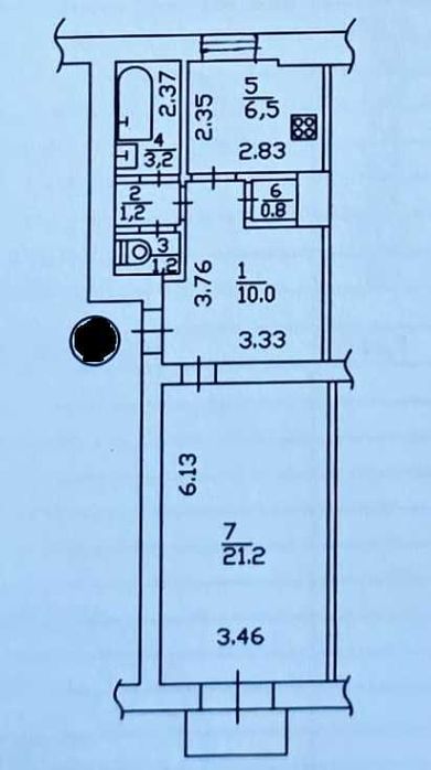 Загальна площа – 45 кв. м., хол – 9, комора – 1, кухня – 7, сум. санвузол – 7, кімната – 21.