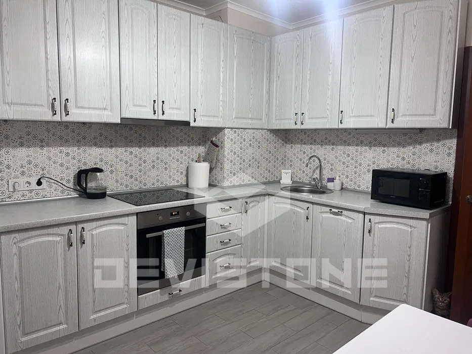 Простора кухня, обладнана всією необхідною технікою:індукційна плита, духова шафа, посудомийна машина, холодильник, електрочайник. Великий розкладний обідній стіл.