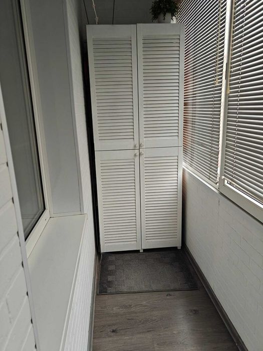 - Утепленный балкон 5м.кв(застеклен пластик Рехау +стеклапакет) на полу ламинат,установлен шкаф.
