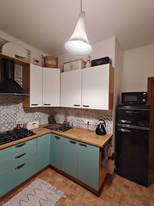 -На кухне мебель и раковина Ікеа. Имеется посудомойка, холодильник и духовой шкаф Gunter Hauer,варочная поверхность Самсунг, микроволновка Gorenje.