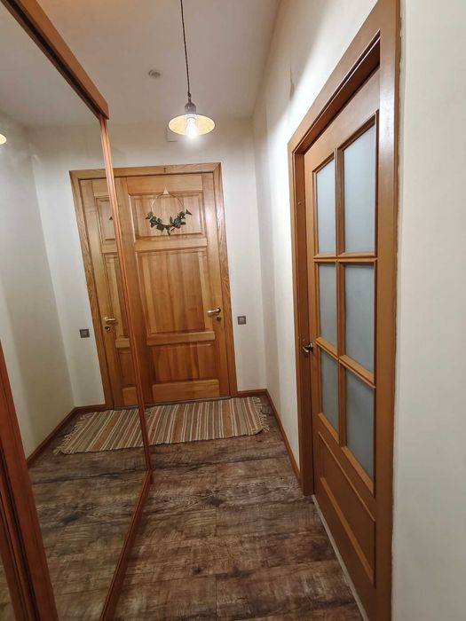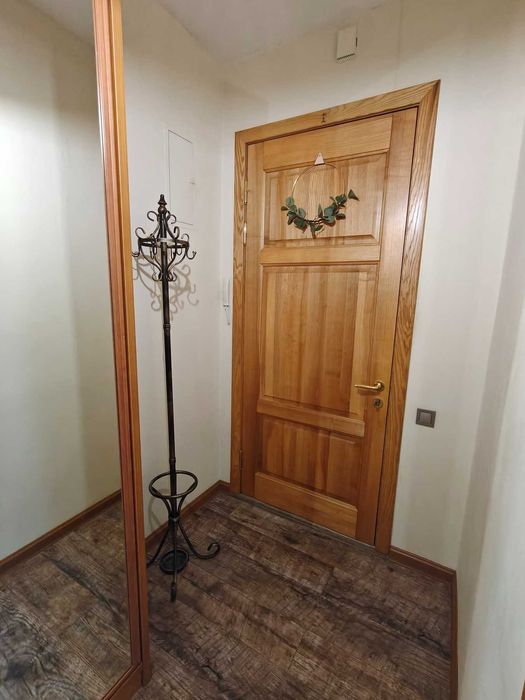 - Входная дверь металлическая плюс установлена для звуко и теплоизоляции вторая дверь из натурального дерева.