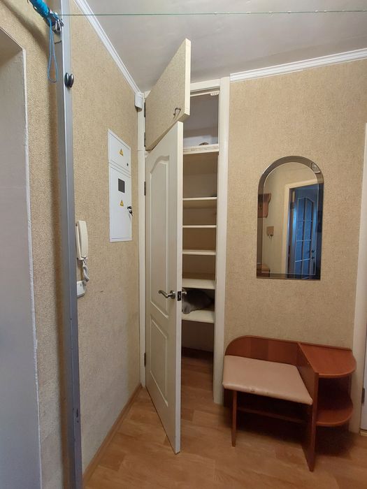 Олександрiвський; Продам однокімнатну квартиру в Запоріжжі. Електрику не відключають.; Велика однокімнатна квартира з нішею. Поверх 7/9. Є лічильники води та газу. Вікна металопластикові скрізь. Балкон засклений. На кухні та у ванній кахель по стінах і по підлозі. На кухні встановлено триступінчастий фільтр для питної води. У кімнаті паркет. У передпокої є комора з полицями. У квартирі залишаються всі меблі, килимове покриття, холодильник, пралка, кондиціонер, бойлер. Надійні сталеві вхідні двері.