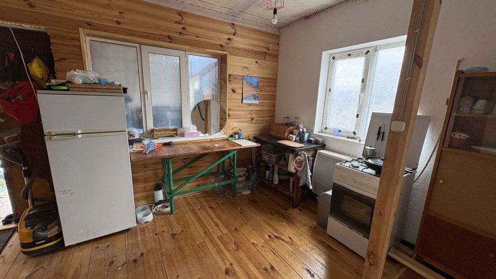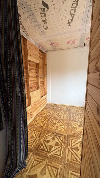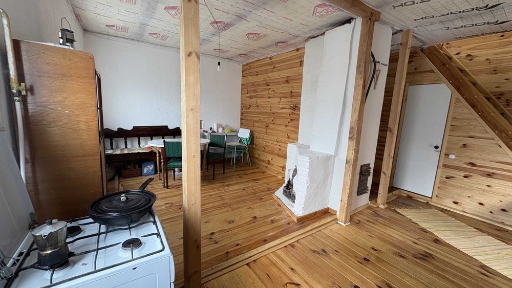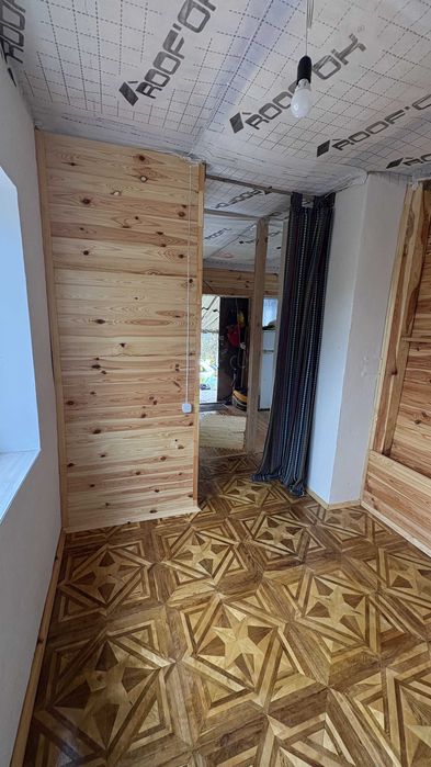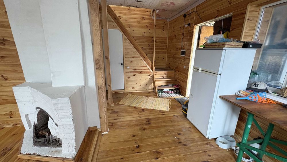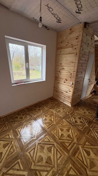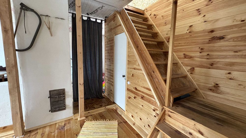 На першому поверсі свіжий ремонт 2024 року, підлога - дошка, стіни - вагонка і венеціанська штукатурка.