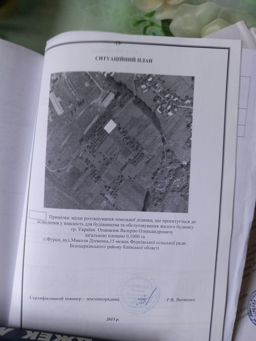 Земельна ділянка с.Фурси.; Земельнп ділянка правильної форми. 10с. Вул.Миколи Дзвенка15. 100м-річка; кадастровий номер: 3220488301:02019:0015