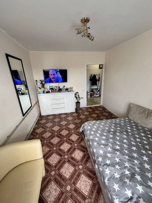 Світла простора квартира з роздільними кімнатами,косметичний ремонт.Кухня на дві квартири електроплита (газу немає) балкона немає.