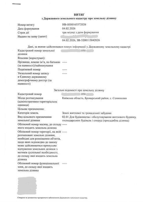 | Земельна ділянка: |
