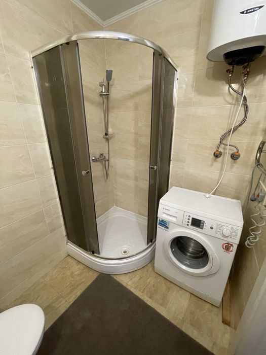 В квартирі є розкладний двоспальний диван, шафа для зберігання речей, холодильник, мікрохвильова піч, бойлер, пральна машина.
