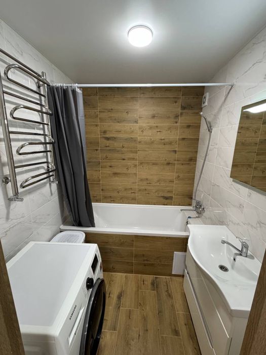 Планування включає дві окремі спальні кімнати із розкладними диванами та шафами, сучасна ванна кімната зі стильним дзеркалом з підсвіткою, роздільний туалет.