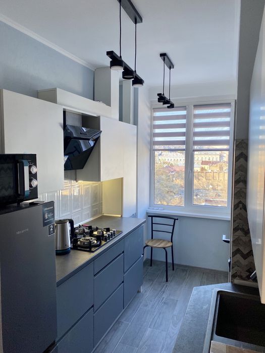 ринок, а кухня та ванна виходять у внутрішній двір будинку з видом на ЦУМ.