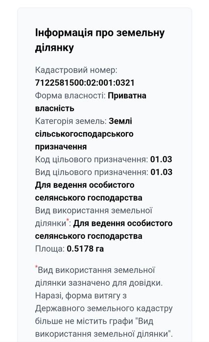 | Земельна ділянка: |