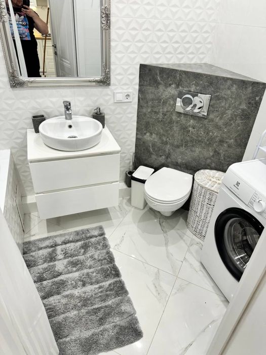 Наявні всі необхідні меблі: Велике двоспальне ліжко.Шафа купе.Диван.