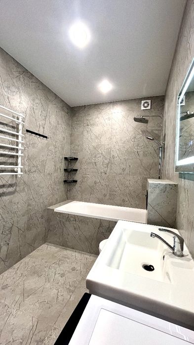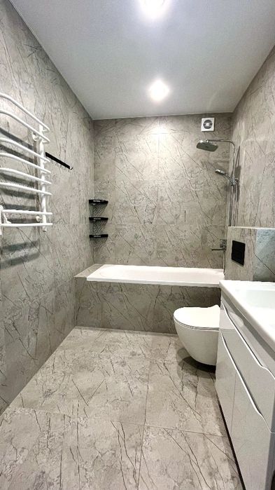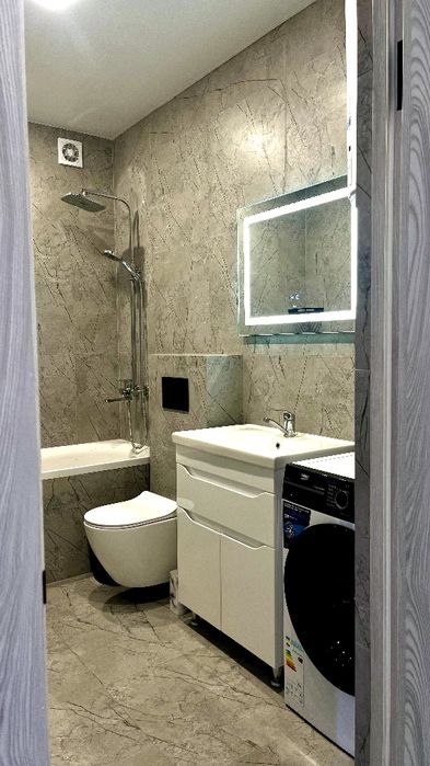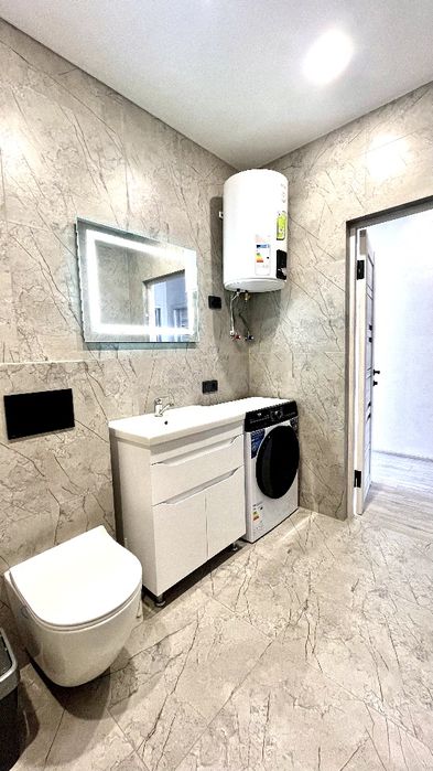 Виконано сучасний євроремонт із використанням якісних матеріалів. Усі меблі та побутова техніка – нові та залишаються майбутнім власникам.