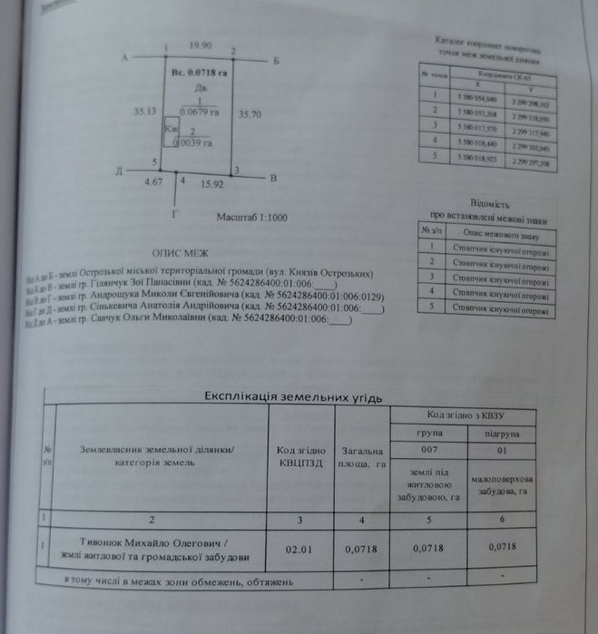 | Земельна ділянка: |