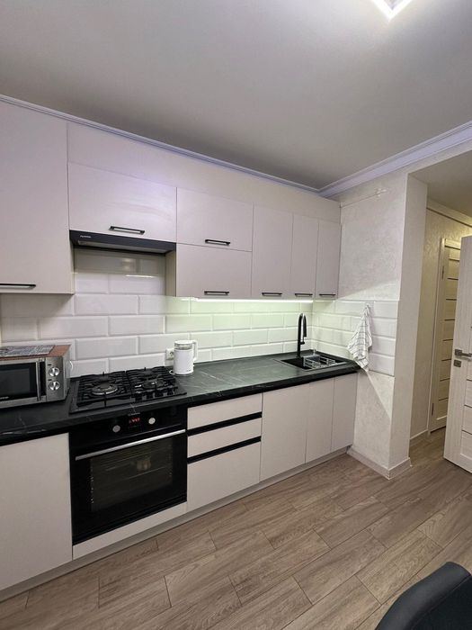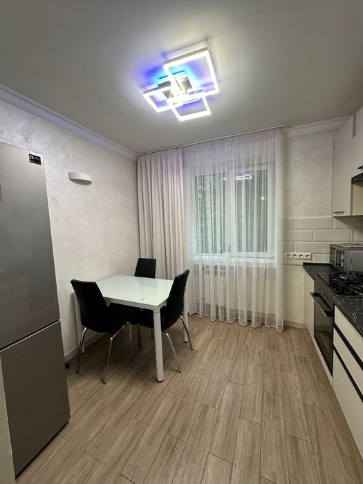 Квартира з сучасним ремонтом, є два балкони. З техніки є: холодильник, мікрохвильова піч, чайник, посудомийка,