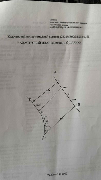 Кадастровий номер: 3222485800:02:012:0351