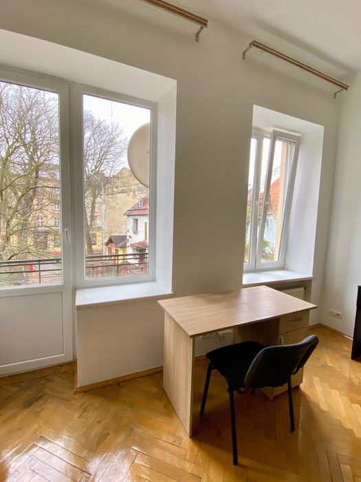 Квартира двостороння: вікна на фасад на вул. Личаківську та вікно у затишний зелений двір , є балкон .