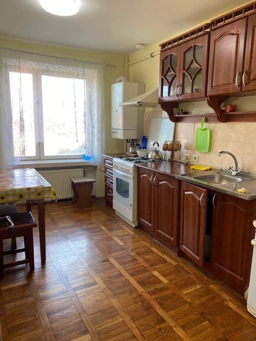 Переваги: 80 м2 загальної площі, кухня 15 м2, чистий житловий стан, меблі залишаються, 2 балкони, індивідуальне газове опалення котел, санвузол роздільний, душова кабіна, будинок 9 поверховий, є ліфт, цегляні стіни, з техніки плита та холодильник.