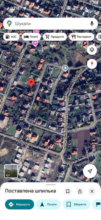 Земельна ділянка знаходиться на повністю заселеній вулиці Павлика, поруч із вулицею Успенська, 800 метрів від нової школи, вулиця має два заїзди проте не є транзитом для жодної іншої вулиці, тому машини тут проїжджають лише сусідів, навколо вже всі будинки збудовані та заселені.