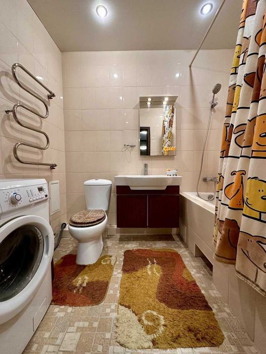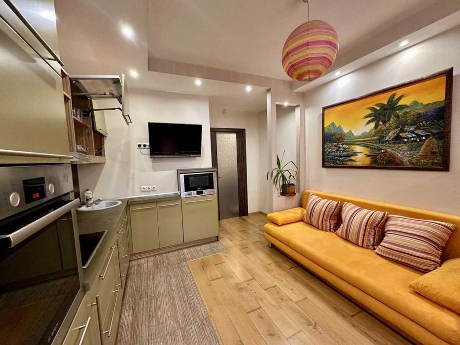 У квартирі виконано якісний ремонт з натуральних матеріалів з продуманим зонуванням і вбудованими меблями. Кухня оснащена всім необхідним, простора ванна кімната з сучасною сантехнікою, два ортопедичні розкладні дивани у спальні та вітальні для щоденного сну.
