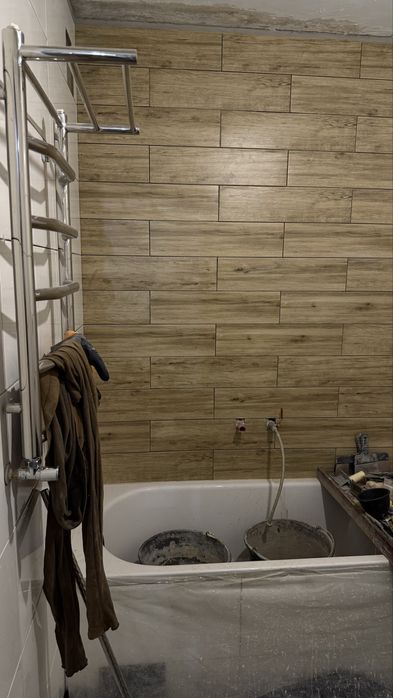 Санвузли обкладені плиткою, труби міняли на нові пластикові, встановлена ванна, інша сантехніка придбана, стоїть на квартирі, не встигли встановити