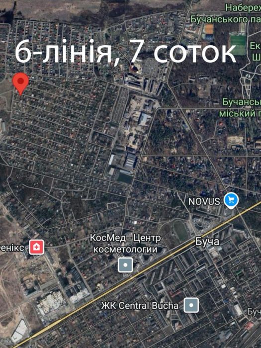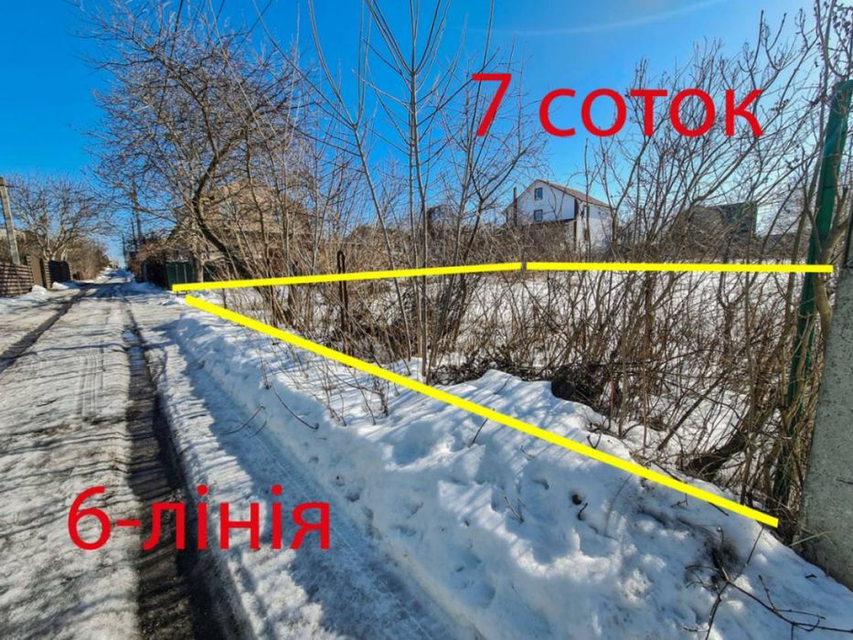 Буча, вул. 6 а Лінія. Ділянка 7 соток. Найкращій участок в СТ Вишневе; Продаж мальовничої ділянки площею 7 соток у центрі Буча. Ділянка розташована у ОСТ Вишневе, на вулиці 6 а Лінія ( Калиновая вулиця), 47.