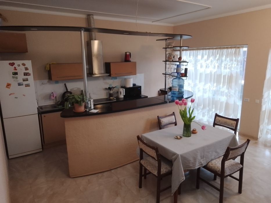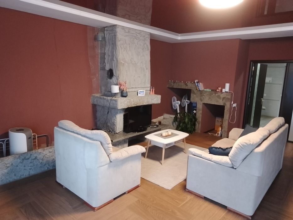 Продам будинок Лезнево.; Дуплекс. Жилий будинок на 210м²,4 поверхи . Цоколь, кухня 25м²,кладовка, котельня ( дрова або електрика) також вихід на подвір'я з зоною відпочинку. Перший поверх,зал 45м² з каміном балконом та вихід на терасу,с.в. гостьовий,віранда,
