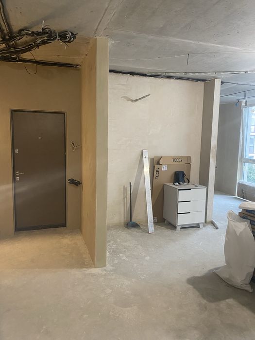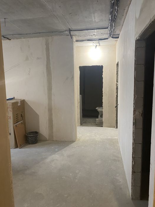 В квартире сделаны все черновые работы, разводка воды, разводка електричества, машинная штукатурка. В санузлах установлены инсталляции.