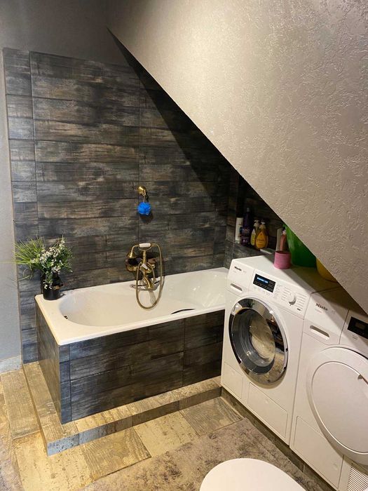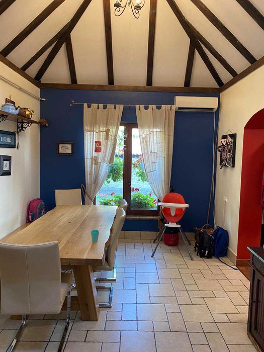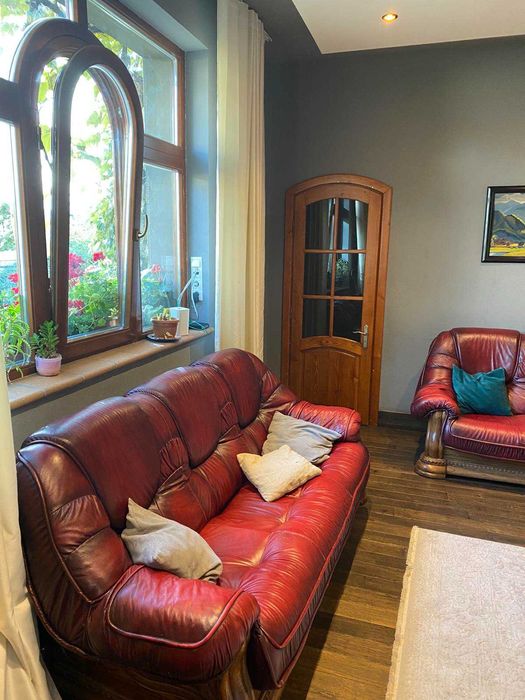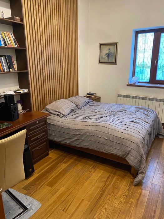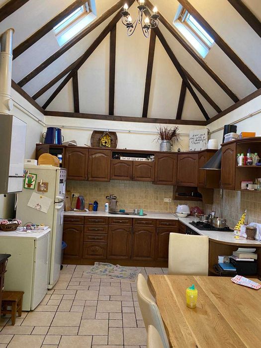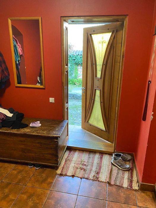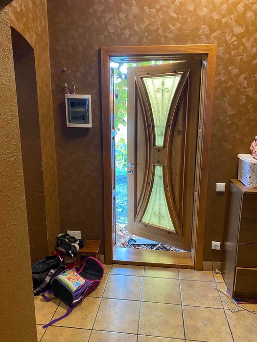 З надвору два входи. Всюди де плитка - теплі поли, покриття у всіх інших кімнатах інженерна дошка з масиву дуба. Вікна євробрус, двері деревяні. Опалення автономне, газове. Вода також своя, каналізація на подвірї. З вулиці стіни затеплені пінопластом.