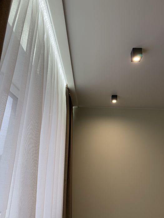 Стеля : шумоізоляція , натяжна .