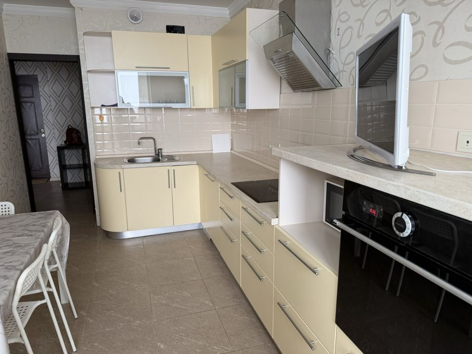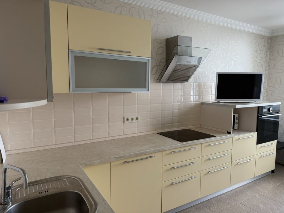 Святошинський; Аренда квартиры : Киев; ул Крамского 9; Пропоную в оренду 1 кімнатну квартиру в сучасному будинку, по вул Івана Крамського 9 в Святошинському районі. Будинок має систему інверторів, під час відключення світла є: опалення, вода, працює ліфт. Квартира розташована на 19 поверсі 22 поверхового будинку, є паркінг під будинком, який слугує бомбосховищем, оскільки будинок монолітно-каркасний. Загальна площа квартири 46.03, житлова кімната -19.17, простора кухня площею -12.47 облаштована вбудованою кухнею, духовою шафою та ел.поверхнею. Сан.вузол сумісний , площею 4.07, має пральну машину, бойлер, ванну. Облаштована гардеробна кімната і просторий коридор з шафою-купе-зручні для великої кількості речей, а також шафа в кімнаті. , Телевізор та вай-фай . металопластикові вікна, засклена лоджія-2.3 м. Квартира вільна, показ у зручний час