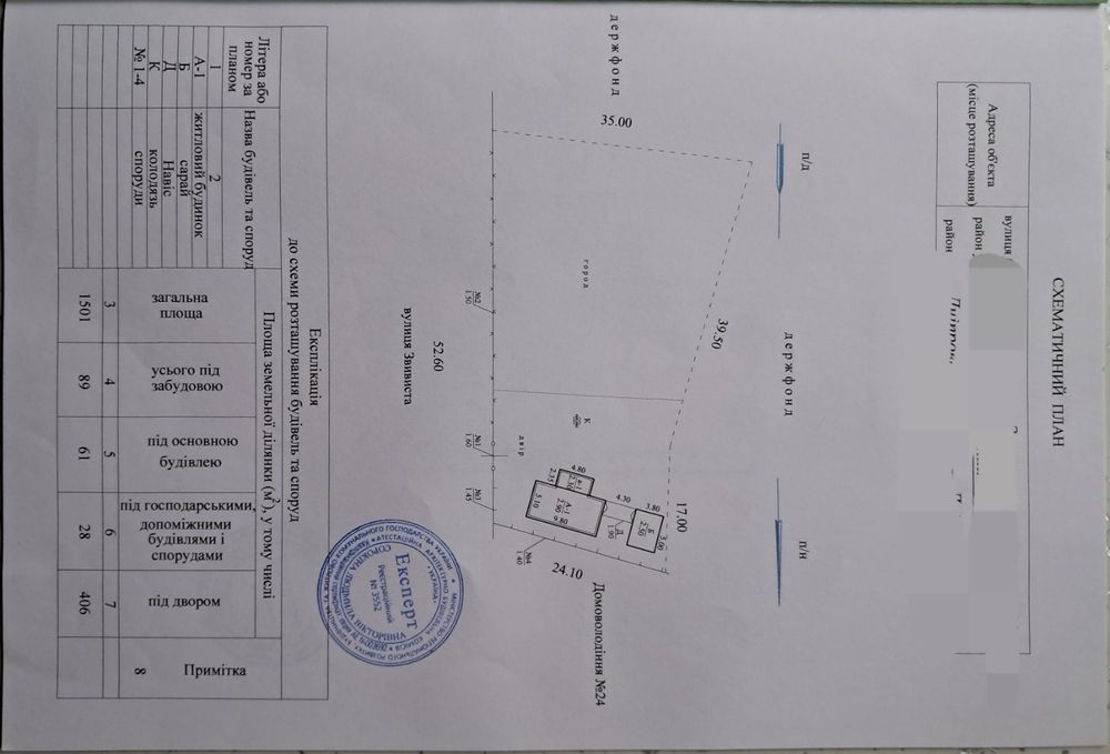 | Земельна ділянка: |