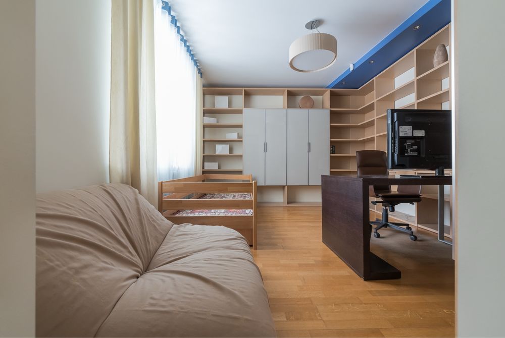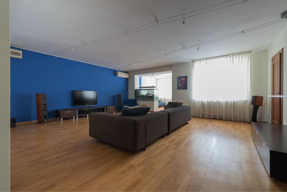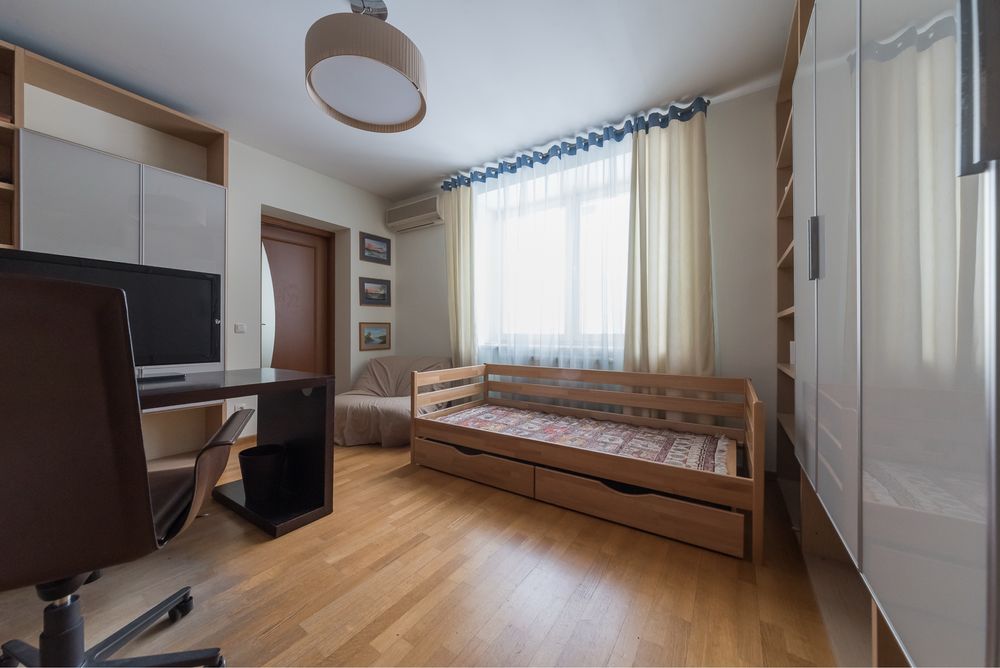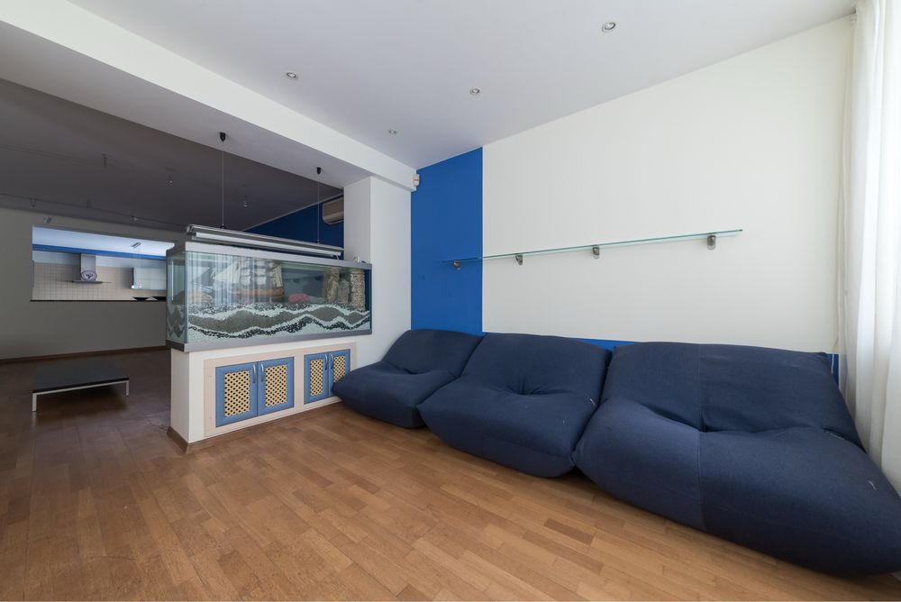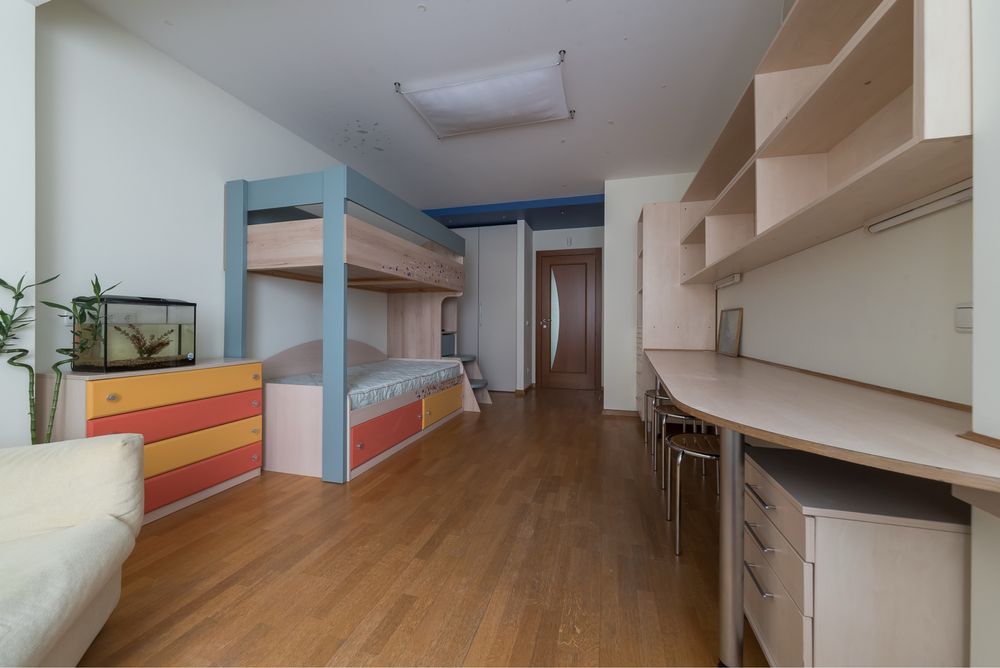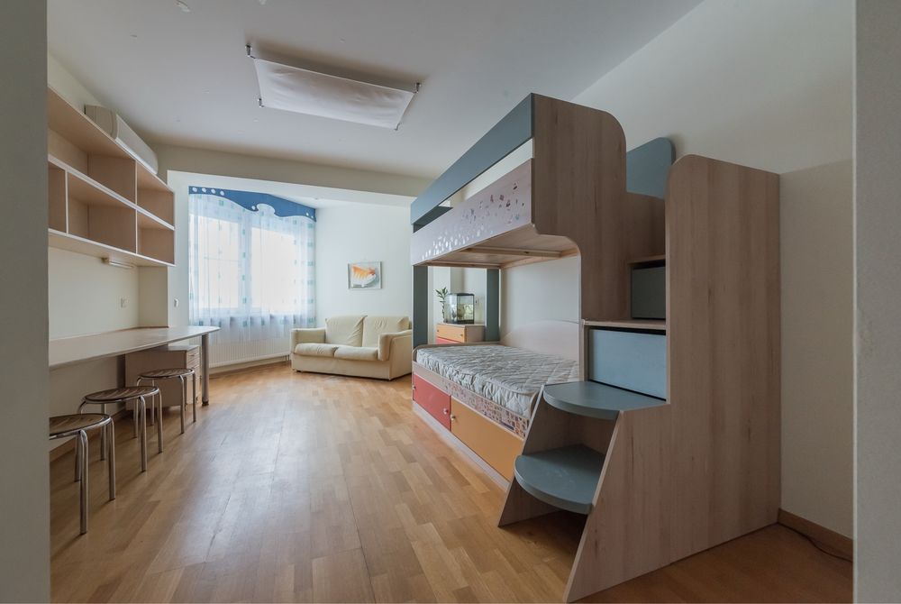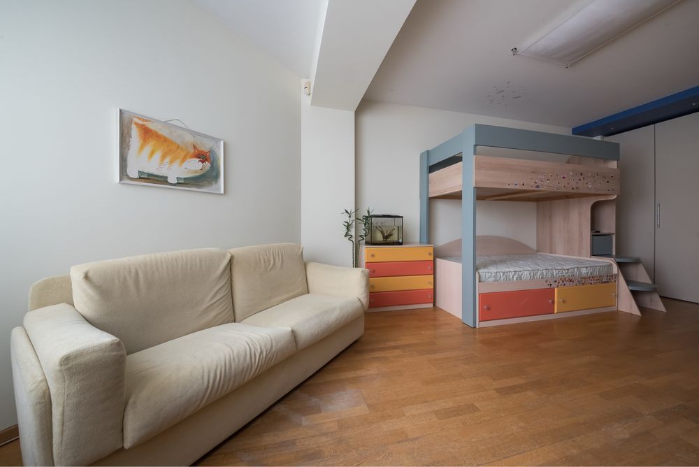 - 175 м2, 2 спальні: батьківська і дитяча, кабінет (тут також є ліжко), кухня, велика вітальня, французький балкончик з видом на красиву площу
