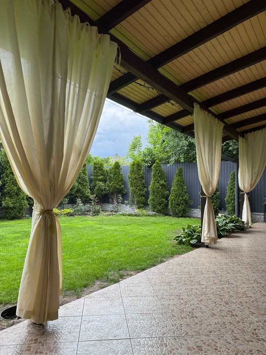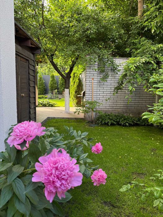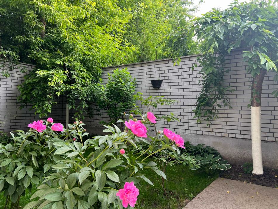 До будинку прилягає ділянка з кущами лохини, півонії, гартензіями та декоративними деревами, велика ділянка з газоном, туями та клумбою з трояндами. На ділянці -автополив газону та крапельний полив туй.