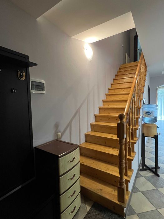 На другому поверсі дві спальні з виходом на балкон. Ванна кімната. Вихід на горище площєю 46,8 кв.м., яке можна облаштувати як третій поверх. Воно утеплене, обшите OSB-плитами, є проводка та світло, використовуємо його для зберігання речей.