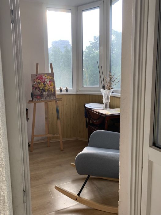 Квартира з чотирма окремими кімнатами розташована на 3-му поверху цегляного 18 поверхвому будинку. Товщина зовнішніх стін 2,5 цегли, забезпечуючи хорошу тепло- та шумоізоляцію, зберігають тепло взимку і прохолоду влітку. Висота стелі 2, 9 м.