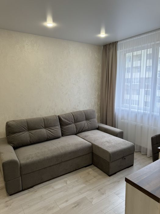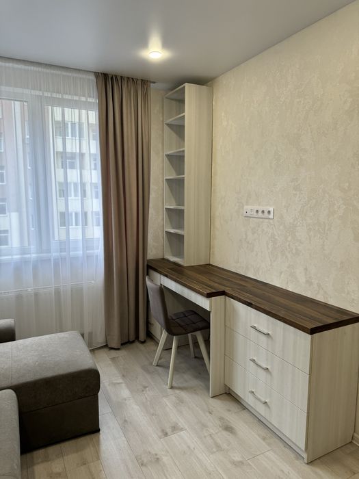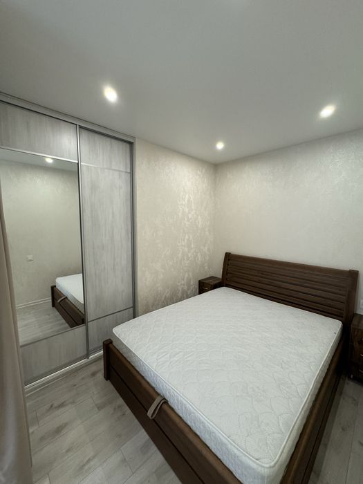 Наявні всі необхідні меблі: велике двоспальне ліжко, розкладний диван,вмонтовані шафи-купе.