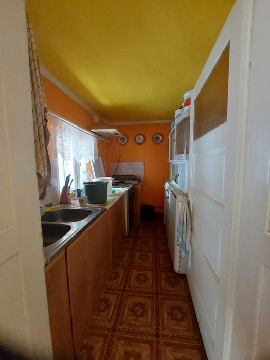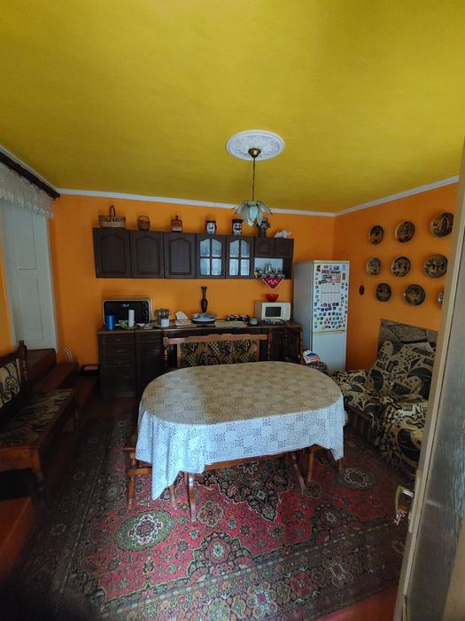 Будинок 1 поверховий з високим цоколем що сприяє зменшенню тепловтрат. Стіни збудовані з цегли та саману - найекологічніші та найкращі матеріали які зумовлюють прохолоду влітку та тепло взимку. Також дах зроблений з керамічної черепиці яка запобігає сильному нагріванні влітку. Двір вкритий бетонними плитами. Ділянка - 25 соток. Крім будинку на ділянці знаходиться гараж, господарські будівлі - 3 шт. та туалет на вулиці. Всередині будинку є 2 спальні, кухня, вітальня, ванна кімната з туалетом та комора. (Дивитись на фото план). Висота потолків - 2, 7 метра. По комунікація - водопровід, каналізація, електропостачання та газ. Будинок опалюється газом, водяне опалення з батареями. Під час відключення світла будинок буде повністю автономним за наявності невеликого акумулятора.