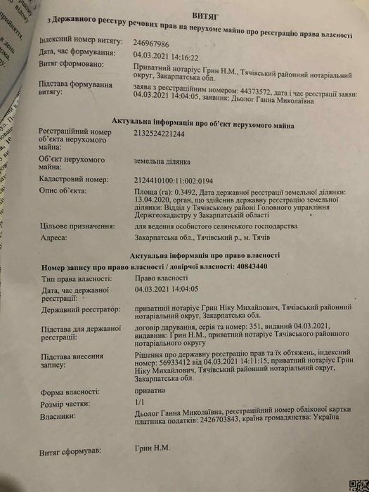 | Земельна ділянка: |